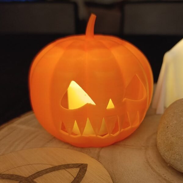 Jack’ô est né dans mon atelier : dessiné et conçu avec passion puis imprimé en PLA végétal orange, il incarne tout l’esprit de la fête d’Halloween et des veillées d’automne. Véritable clin d’œil à Jack O’Lantern, il revisite la tradition dans une version artisanale, moderne et ludique. Son sourire mystérieux, ses contours doux et son éclat chaleureux font de lui un allié idéal pour instaurer une ambiance magique et réconfortante, que ce soit sur ta table, une étagère, ou sur l’autel de Samhain.
